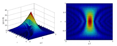 - Если является преобразованием Фурье от сигнала , то согласно теореме Парсеваля функция неопределенности может быть представлена в виде
