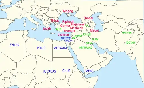 Согласно Библии, сыновьями Хама были Хуш, Мицраим, Фут и Ханаан[11].