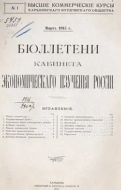 - ↑ Нариси з історії Харківського національного економічного університету: Монографія / Д. Ю. Михайличенко, В.Є.Єрмаченко, О. А. Сахно, Під заг. ред. В. С. Пономаренка.- Х.: ВД «ІНЖЕК», 2005. — С. 39 — 40. Лортикян Э. Л. Украинские экономисты первой терти XX столетия: очерки истории экономической науки и экономического образования. — Харьков: Харків, 1995. — С. 53 — 56.