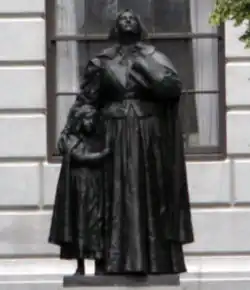 У Капитолия штата Массачусетс находится установленный в 1922 году памятник работы Сайруса Даллина, изображающий Энн Хатчинсон с дочерью Сузанной. На мраморном постаменте