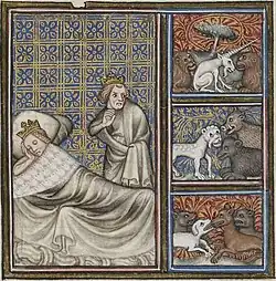 Видения Хильдерика I. Большие французские хроники. Экземпляр Карла V. Париж. Франция. XIV век