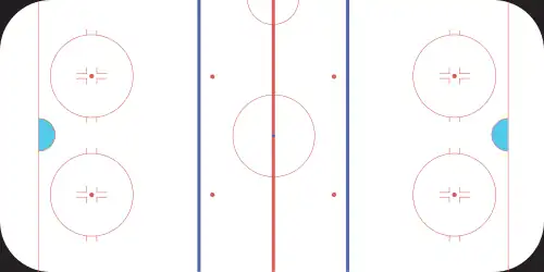 Углы площадки должны быть скруглены дугой окружности радиусом от 7 до 8,5 м по правилам ИИХФ и 28 футов (8,53 м) в НХЛ.