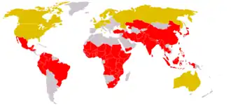 По оценке Всемирной организации здравоохранения, в 2010 году в мире было от 3 до 5 миллионов случаев заболевания холерой и 100—130 тысяч смертельных случаев[15]. Эти заболевания происходили, главным образом, в развивающихся странах[16]. В начале 1980-х уровень смертности оценивается как превышающий 3 миллиона в год[17]. Точное количество случаев заболевания оценить трудно, поскольку о многих из них не сообщается из-за опасений, что вспышки холеры могут оказать негативный эффект на приток туристов в этих странах[18]. В настоящее время холера продолжает носить эпидемический и эндемичный характер во многих регионах мира[17].