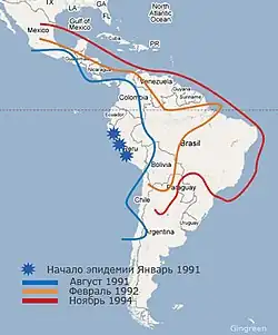- ↑ Epidemiological Update. Cholera (англ.). Pan American Health Organization (6 ноября 2014). Дата обращения: 9 августа 2019. Архивировано 4 марта 2016 года.