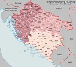 Армию Независимого государства Хорватии реорганизовали в ноябре 1944 года, объединив подразделения усташей и Хорватские силы самообороны в 18 дивизий, включая 13 пехотных, две горные, две штурмовые и одну резервную, каждая со своей собственной артиллерией и другими подразделениями обеспечения. Было также несколько бронетанковых частей. С начала 1945 года хорватские дивизии были распределены по разным немецким корпусам, а к марту 1945 они держали Южный фронт[12]. Тылы обеспечивала хорватская жандармерия (хорв. Hrvatsko Oružništvo) в составе около 32 000 человек, разделённая на 5 добровольческих полков полиции плюс 15 отдельных батальонов, оснащённых стандартным оружием лёгкой пехоты, включая миномёты[20].