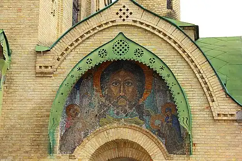 Первый крупный храм, построенный в неорусском стиле[2]. Архитектор Владимир Покровский, помощники архитектора — П. Д. Благовещенский, И. Ф. Безпалов; художники Николай Рерих, В. Т. Перминов; мозаичные работы частной мастерской Владимира Фролова).