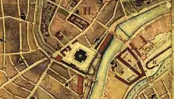 Рытьё котлована будущего дворца началось в 1935 году, а к 1939-му был завершён фундамент высотной части здания. На бетонное кольцо уложили 280 стальных плит, служивших основанием для стальных башмаков, на которые должны были опираться колонны каркаса. С началом Великой Отечественной войны от проекта временно отказались. Часть металлических конструкций Дворца пошла на изготовление противотанковых ежей для обороны Москвы. Вскоре едва поднявшееся от уровня фундамента здание было полностью разобрано. От идеи строительства Дворца Советов окончательно отказались в 1956 году[57]. А в 1960 году на месте фундамента был закончен открытый плавательный бассейн «Москва», просуществовавший до 1994 года[58].