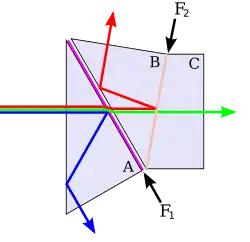 В цветной плёночной фотографии, так же, как и в плёночном кинематографе, при цветоделении получаются три цветоделённых монохромных изображения на отдельных плёнках или в отдельных слоях многослойного светочувствительного фотоматериала[3]. Разделение на составляющие происходит при помощи светофильтров или за счёт избирательной спектральной чувствительности[4] фотоэмульсии. Самые первые способы цветоделения в фотографии и кинематографе предусматривали одновременную съёмку двух или трёх чёрно-белых негативов с разделением светового потока цветоделительными призмами и светофильтрами. Первые цветные киносистемы «Синеколор» и «Техниколор» предусматривали съёмку на две или три киноплёнки.