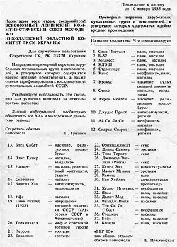 В 1925 году под грифом «Совершенно секретно» Главлит выпустил первый «Перечень сведений, составляющих тайну и не подлежащих распространению в целях охранения политико-экономических интересов СССР». Текст первого списка имел 16 страниц и содержал 96 пунктов[53]. Кроме перечня выпускались циркуляры с указанием запрещённых тем. Их число быстро росло. В документе, с которым работали цензоры в последние годы существования СССР, насчитывалось 213 параграфов, и в каждом — по 5, 6, а то и 12 пунктов[54].