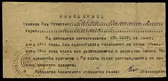Отметка об уровне доступа проставлялась цензором Главлита. С 10 июня 1938 года эта отметка представляла собой печать в виде шестиугольника, так называемая «шайба»[65]. Одна «шайба» означала категорию «4с», две «шайбы» — категорию «Зс» и так далее до четырёх «шайб»[66].