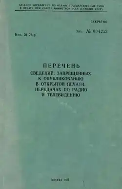 276. Главлит СССР, Русский: Главное управление по охране государственных тайн в печати при Совете Министров. Перечень сведений, запрещенных к опубликованию в открытой печати, в передачах по радио и телевидению с. 4 (1976). Дата обращения: 26 сентября 2023.