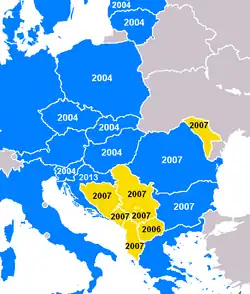 Ранее в организацию входили: Болгария, Чехия, Венгрия, Польша, Румыния, Словакия, Словения и Хорватия. Они упразднили свой статус, вступив в ЕС.