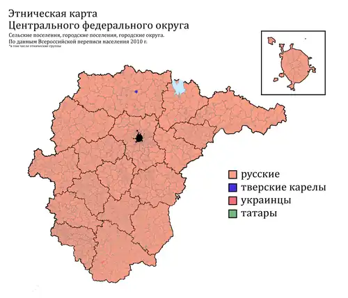 Этническая карта ЦФО по городским и сельским поселениям, перепись 2010 г.