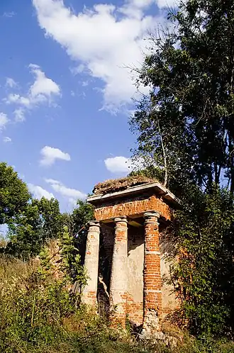 Кирпичная церковь во имя Введения во храм Пресвятой Богородицы сооружена в 1681 году в стиле русского узорочья на средства стольника Григория Мясоедова взамен прежней деревянной церкви. Стены церкви сложены из большемерного кирпича необычно крупного размера: 10х15х31 см². План здания построен по традиционной для приходских церквей схеме: двусветный трёхапсидный пятиглавый четверик, завершённый поясом декоративных кокошников. К высокому объёму храма примыкает с востока апсида, а с запада — трапезная. Восточная стена апсиды разделена на три закругленных поля с полуколоннами между ними. Внутри храма высокий объём перекрыт сомкнутым сводом, скрепленным в обоих направлениях целой системой железных связей[1][2].