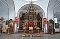 Храмовая часть на северной и южной сторонах образует выступы, завершённые аттиками. Её увенчание — вытянутый купол на отмеченном тем же вертикализмом барабане, который прорезан высокими арочными окнами. Барабан алтарного купола также восьмигранный, но широкий и низкий, а его окна квадратные. Кроме того, в основании этого купола фальшивые люкарны[1].