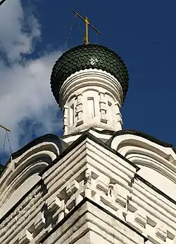 Церковь имела типичные для XVII века формы и состояла из небольшого четверика и трапезной, к которой с запада примыкала шатровая колокольня. Храм выполнили в стиле русского узорочья. Главное строение имеет сомкнутые своды, его венчают два яруса увеличенных островерхих кокошников и вытянутые главы. Вход обрамлён торжественным порталом. Визуально помещения церкви кажутся меньше из-за малого количества окон и скудного естественного освещения[2][8]. Первый ярус колокольни украсили угловыми спаренными пилястрами, позднее этот объём переоборудовали в притвор церкви[6][4].