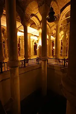 Данный резервуар имеет площадь 3640 м² (64 × 56,4 м), его ёмкость составляет 40,000 м³[2]. Он представляет собой гипостильный зал, кирпичные своды которого опираются на 224 мраморные колонны. Они выстроены в 16 рядов по 14 штук, высота колеблется в пределах 14-15 метров. Материал для колонн добывался на близлежащем острове Мармара[2]. Посередине каждая из них опоясана мраморным кольцом. Большинство колонн вместе с капителями помечены надписями из нескольких букв на греческом языке (вероятно, это подписи бригадиров артелей, изготовивших колонны)[3]; по другим данным, это масонские знаки[2].