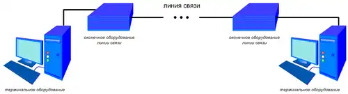 Оборудование, осуществляющее формирование данных из пользовательской информации, а также представление данных в виде, понятном пользователю, называется терминальным оборудованием (ООД, оконечное оборудование данных). Оборудование, преобразующее данные в форму пригодную для передачи по линии связи и осуществляющее обратное преобразование, называется оконечным оборудованием линии связи (АКД, аппаратура канала данных). Терминальным оборудованием может служить компьютер, оконечным оборудованием обычно служит модем.