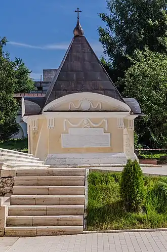 Миниатюрная часовня-усыпальница построена в форме четырёхгранной пирамиды с четырьмя выступами. Внутреннее пространство перекрыто кирпичным сводом. Стены украшены гирляндами, высеченными из белого старицкого камня. Внутри часовни установлен каменный саркофаг, находящийся на пирамидальном возвышении[2][1].