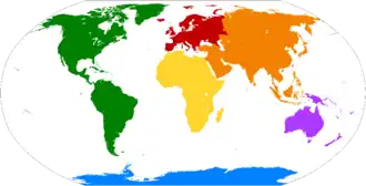 | Шесть[11] | Африка | Европа | Азия | Америка | Антарктида | Австралия | ||