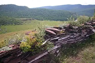 - ↑ Кызласов И. Горные крепости Саяно-Алтая эпохи средневековья. Ландшафтные особенности // Древности Сибири и Центральной Азии : Сборник научных трудов. — Горно-Алтайск: ГАГУ, 2014. — № 7 (19). — ISSN 978-5-91425-105-2. Архивировано 25 апреля 2022 года.