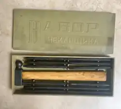 - Фигурный или узорный чекан (пуансон) — многократное повторение декоративной формы: треугольник, звезда, глаз и т. д.