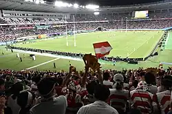 - ↑ Sudden stadium shift leaves Rugby World Cup high and dry (англ.). Japan Times (18 июля 2015). Дата обращения: 17 июня 2017. Архивировано 3 января 2016 года.