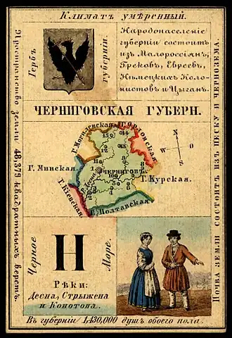Черниговская губерния — губерния Российской империи, располагавшаяся на левобережье Днепра. Образована в 1802 году в результате раздела Малороссийской губернии на Черниговскую и Полтавскую. Была расположена между 50°15' и 53°19' с. ш. и 30°24' и 34°26' в. д.
