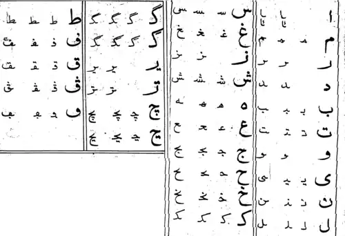 С распространением ислама в Чечне утвердилась арабская письменность, которым записаны тексты чеченских летописей «Тептаров» (сохранились оригиналы летописей некоторых чеченских кланов). Ограниченно с 1862 года существовала чеченская письменность на кириллице, созданная П. К. Усларом, но не получившая большого распространения. В 1925 году была введена письменность на латинской основе. В 1938 году её сменила кириллица, действующая по настоящее время[39]. В 1990-е годы была предпринята попытка восстановить латинизированный алфавит.