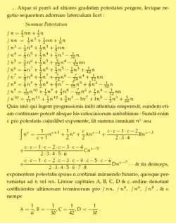 Чи́сла Берну́лли — последовательность рациональных чисел , впервые рассмотренная Якобом Бернулли в связи с вычислением суммы последовательных натуральных чисел, возведённых в одну и ту же степень: