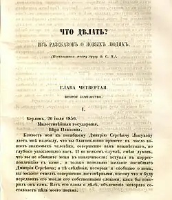 «Что де́лать? (Из рассказов о новых людях)» — роман русского философа, журналиста и литературного критика Николая Чернышевского, написанный в декабре 1862 — апреле 1863 года, во время заключения в Петропавловской крепости Санкт-Петербурга. Был написан отчасти в ответ на произведение Ивана Тургенева «Отцы и дети». М. Н. Катков упоминает роман как «Коран нигилизма»[1].