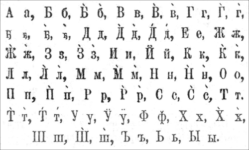 В период старочувашской письменности (XVIII век — 1871 год) для записи чувашской речи использовался русский алфавит без добавления специальных букв для звуков, характерных для чувашской речи.