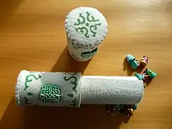 - Ладья — монг. тэрэг, «повозка, телега». Двухколёсная кибитка без лошади, с упирающимися в землю оглоблями. Встречаются комплекты, где ладья представлена колесом, драконом, легендарной птицей гаруда, павлиньим хвостом или веером, в современных комплектах — автомобилем или танком.