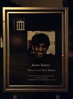 Аа́рон Хи́ллел Шварц (более точно Суо́рц; англ. Aaron Hillel Swartz; 8 ноября 1986, Чикаго — 11 января 2013, Нью-Йорк) — американский интернет-активист, программист, писатель, хактивист. В возрасте 14 лет Шварц стал соавтором спецификации RSS 1.0 и состоял в рабочей группе RDF Консорциума Всемирной паутины под руководством Тима Бернерса-Ли[3]. В 15 лет Шварц познакомился с ведущим теоретиком интернет-права Лоуренсом Лессигом, который пригласил его поучаствовать в разработке альтернативных лицензий авторского права Creative Commons[4]. После окончания школы программист поступил в Стэнфордский университет, однако бросил учёбу в конце первого года ради разработки собственного стартапа Infogami в бизнес-инкубаторе Y Combinator, созданного предпринимателем Полом Грэмом[5][6]. В 2005 году Infogami объединили с Reddit в фирму Not a Bug, которая впоследствии была продана Condé Nast[4][7][8].