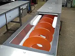 Шнек (или шнековый конвейер, винтовой конвейер) — рабочая детальмеханизма, предназначенного для транспортировкигруза перемещением вдоль вращающейся винтовой поверхности внутри трубы. Шнек — это транспортирующее устройство для сыпучих, мелкокусковых, пылевидных, порошкообразных материалов.