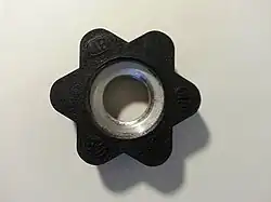 • замки-гайки для втулок 25 мм, 35 мм и 50 мм. Гайки для штанги со втулкой 25 мм не учитываются в массе, гайки для втулок 35 и 50 мм используются в разборных гантелях.