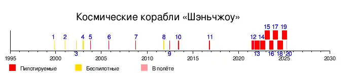 | Шэньчжоу-23 | IV квартал 2026 года (план) | 180 суток (план) | - | - | Запланирована стыковка с базовым модулем «Тяньхэ» орбитальной станции «Тяньгун». | |