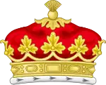 Щит коронован короной детей монарха с шапкой пэра внутри.