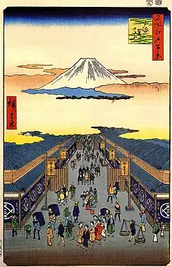 Построенный в 1603 году деревянный мост Нихомбаси (яп. 日本橋 «японский мост)[a 1] считается главным мостом в стране. По приказу Токугавы в течение нескольких столетий все расстояния отмерялись от этого моста, который считался географическим центром страны[4]. Современные знаки на автобанах, показывающие расстояние до Токио, указывают именно на расстояние до моста Нихомбаси.