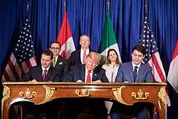 - ↑ Nelson, Steven; Christenson, Josh. Trump announces 25% tariffs on Canada, Mexico will take effect at midnight (амер. англ.) (3 марта 2025). Дата обращения: 4 марта 2025.