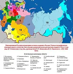 В 1871 году П. П. Семёнов-Тян-Шанский разделил европейскую Россию (вместе с Финляндией, Царством Польским и Кавказом) на 14 «естественных» областей, уточнив их границы уже не по губерниям, а по уездам. Для нужд государственной статистики России учёный предложил 12-частную классификацию, привязанную к губерниям[2].