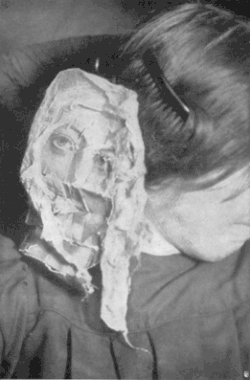 «Белое, похожее на небольшое облако образование вытянулось на 4-5 футов в высоту… затем неожиданно из этого облачного столба выступила округлая изящная фигура Берты», — так в 1885 году Э. А. Брекетт описывал происходившее на сеансе с участием Хелен Берри[10]. Согласно другим описаниям, эктоплазма — это «пульсирующее вещество грязно-белого цвета» (Эдмунд Доусон-Роджерс) или «красноватая липкая субстанция» (Винсент Терви).