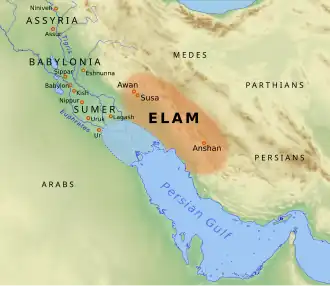 Эла́м или Ела́м[1] (шум. Ним, аккад. Эламту, самоназвание — Haltamti) — историческая область и древнее государство (3 тысячелетие — середина VI в. до н. э.) на юго-западе современного Ирана (провинции Хузестан и Лурестан)[2].