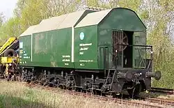 Умформер 50 Гц → 16⅔ Гц на Железной дороге ГДР, передвижное исполнение. Большой вес короткого вагона несут семь осей.