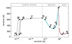 Переход от несамостоятельного разряда к самостоятельному называется электрическим пробоем. Электрический разряд и пробой отличаются по происхождению: пробой связан со скачкообразным увеличением тока при напряжении пробоя, а электрический разряд — со скачком тока при росте проводимости среды.