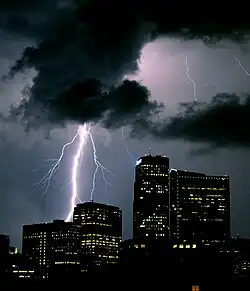 Ярким проявлением электричества в природе служат молнии, электрическая природа которых была установлена в XVIII веке. Молнии издавна вызывали лесные пожары. По одной из версий, именно молнии привели к первоначальному синтезу аминокислот и появлению жизни на земле (Эксперимент Миллера — Юри и Теория Опарина — Холдейна). Атмосфера Земли представляет собой гигантский конденсатор, нижняя обкладка которого (земная поверхность) заряжена отрицательно, а верхняя обкладка (верхние слои атмосферы до высоты 50 км) положительно. Разность потенциалов между поверхностью Земли и верхними слоями атмосферы составляет 400 кВ, вблизи поверхности Земли существует постоянное электрическое поле напряжённостью 100 В/м.