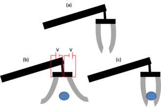 - Ионные ЭАП, в которых усилие возникает из-за смещения ионов в полимере. Рабочие напряжения ионных ЭАП — единицы вольт, но необходимость поддержания потока ионов приводит к большему энергопотреблению, кроме того, для поддержания заданного положения необходим постоянный расход энергии.