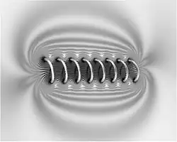 Электродина́мика — раздел физики, изучающий электромагнитное поле в наиболее общем случае (то есть, рассматриваются переменные поля, зависящие от времени) и его взаимодействие с телами, имеющими электрический заряд (электромагнитное взаимодействие)[1]. Предмет электродинамики включает связь электрических и магнитных явлений, электромагнитное излучение (в разных условиях, как свободное, так и в разнообразных случаях взаимодействия с веществом), электрический ток (вообще говоря, переменный) и его взаимодействие с электромагнитным полем (электрический ток может быть рассмотрен при этом как совокупность движущихся заряженных частиц). Любое электрическое и магнитное взаимодействие между заряженными телами рассматривается в современной физике как осуществляющееся посредством электромагнитного поля, и, следовательно, также является предметом электродинамики.
