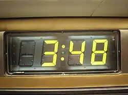 Электронные часы также используются в транспортных средствах. Такие часы имеют светящийся дисплей, который видно в любое время суток, и часто питаются от аккумуляторной батареи самого средства передвижения.