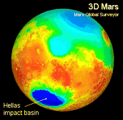 ![]() Равнина Эллада (светлая область). Изображение создано из чёрно-белых снимков среднего разрешения и цветных снимков низкого разрешения станций Викинг-1 и Викинг-2 | |